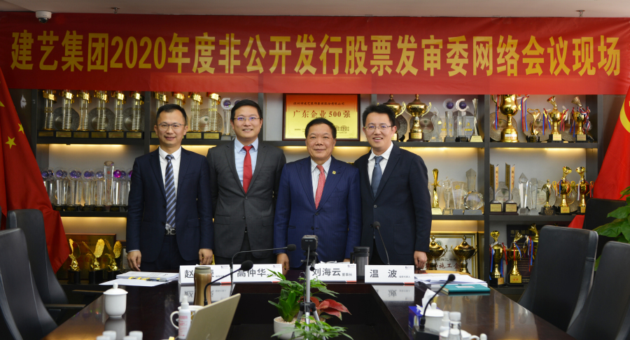12月21日下午,建藝集團(tuán)2020年度非公開發(fā)行股票申請,獲中國證券監(jiān)督管理委員會(huì)第十八屆發(fā)行審核委員會(huì)179次會(huì)議審核通過!建藝集團(tuán)董事長劉海云、副總裁兼董事會(huì)秘書高仲華以及保薦代表人溫波、趙桂榮,在集團(tuán)總部以網(wǎng)絡(luò)會(huì)議形式參會(huì)。