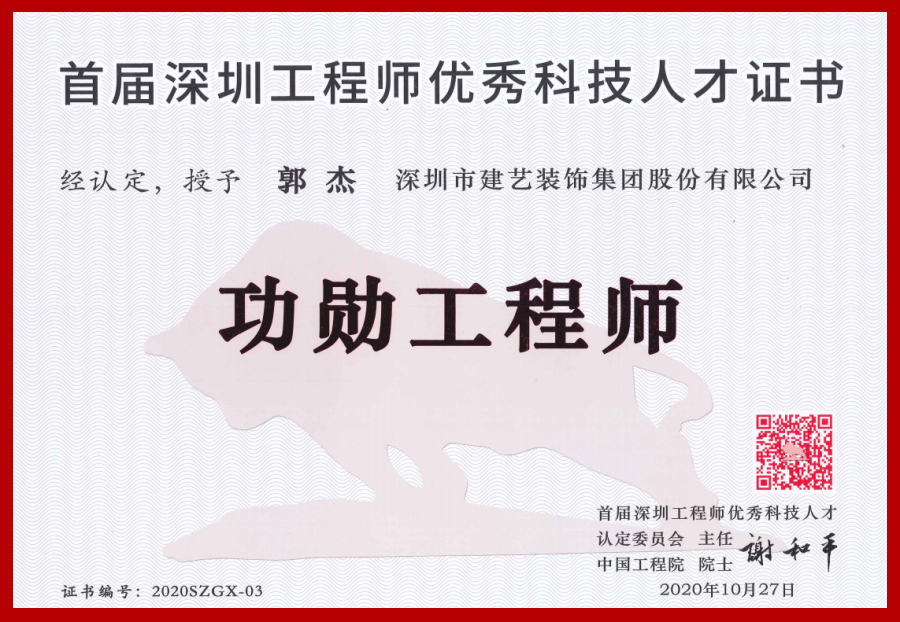 【重磅!】郭杰院長獲評“功勛工程師”——深圳建筑裝飾工程領(lǐng)域第一人