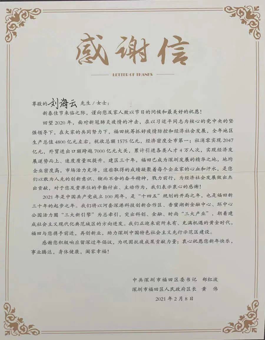 【建藝動態(tài)】一封感謝信,一份大盆菜——來自福田區(qū)委、區(qū)政府對企業(yè)家的關(guān)心致愛