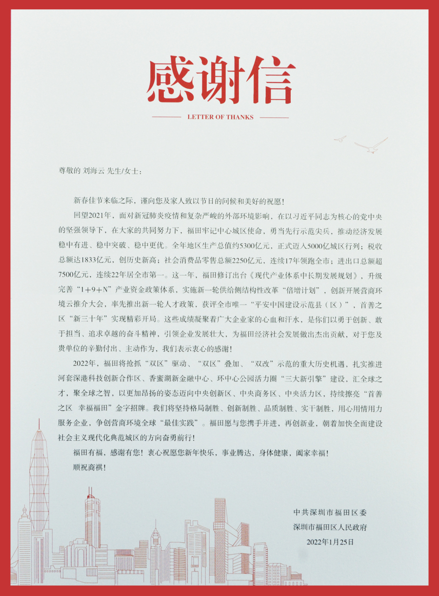 就在農(nóng)歷虎年春節(jié)即將到來(lái)之際,1月28日下午,福田區(qū)委、區(qū)政府特別為區(qū)上市企業(yè)——建藝集團(tuán)贈(zèng)送了一份極具地方特色且洋溢著濃濃關(guān)懷溫情的特殊年禮——大盆菜及一封感謝信。以感謝在過(guò)去的一年,建藝集團(tuán)為福田經(jīng)濟(jì)社會(huì)發(fā)展所做出的杰出貢獻(xiàn),并向集團(tuán)創(chuàng)始人劉海云先生致以新春?jiǎn)柡颉?/span>