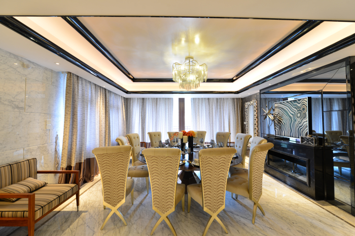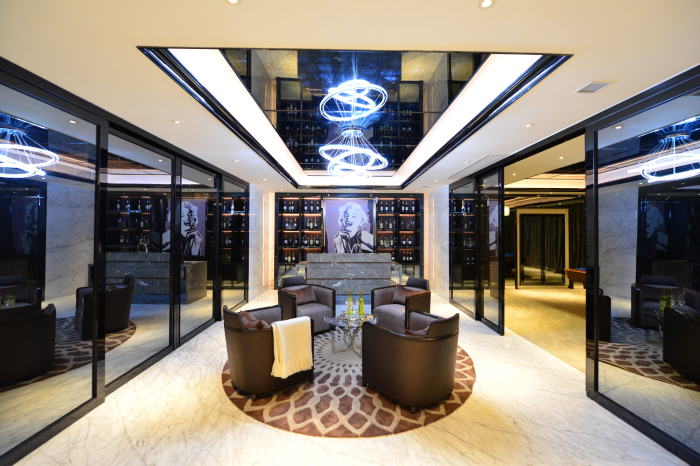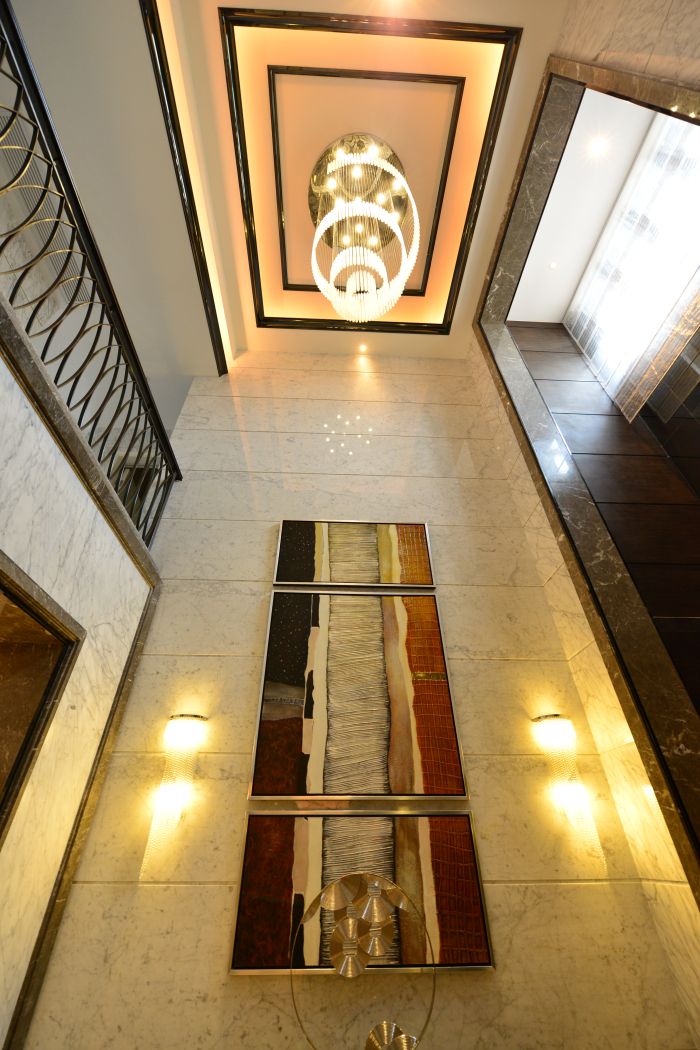 建藝集團為保證名鐫的裝飾裝修效果,可謂是投入了大量的精力,對各種名貴裝飾材料更是巧妙設計,并做到精心搭配。如酒窖地面采用意大利雪花白大理石,質感純凈,如雪花般晶瑩剔透,也如四周的酒色一樣,品質極高。而入戶大堂的旋轉吊燈和樓梯間從頂樓垂真而下的水晶吊燈,則都凸現了建藝集團對設計要求的嚴格遵守和孜孜匠心。