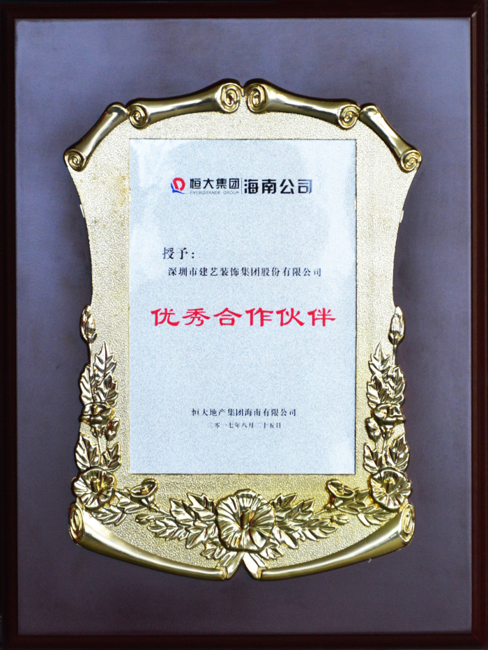 建藝集團(tuán)獲評(píng)為恒大地產(chǎn)集團(tuán)海南有限公司“優(yōu)秀合作伙伴”