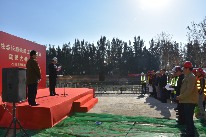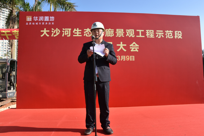 大沙河生態(tài)長(zhǎng)廊景觀項(xiàng)目示范段動(dòng)員大會(huì)隆重舉行——建藝集團(tuán)董事、副總裁孫昀登臺(tái)發(fā)言