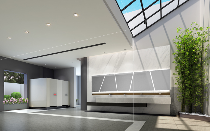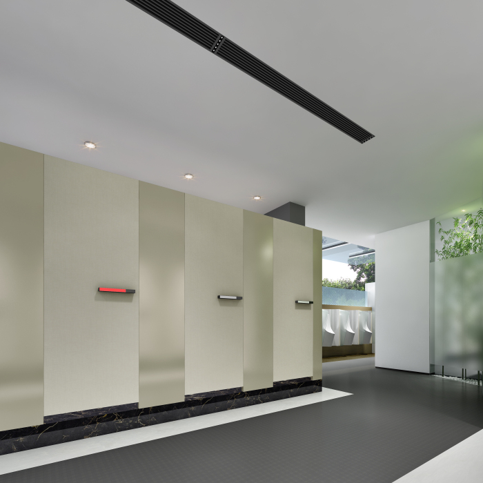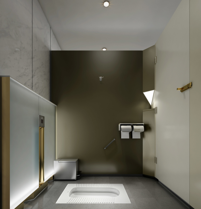 結(jié)合南山的定位——世界級(jí)創(chuàng)新轉(zhuǎn)型濱海城區(qū),本公廁要做到“顛覆傳統(tǒng),打開思路”,按全市最高標(biāo)準(zhǔn)五星級(jí)。但受結(jié)構(gòu)層高和風(fēng)管影響,空間高度達(dá)不到五星,力爭在使用體驗(yàn)方面達(dá)到最精致高端化。