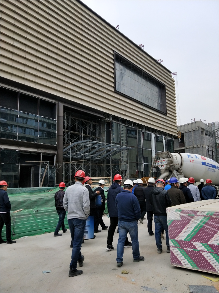 丁總一行在建藝集團等項目工程人員的陪同下,詳細了解了項目整體施工情況,并對項目幕墻、樣板區(qū)等區(qū)域的實際裝修進展情況進行了考察。期間,丁總現(xiàn)場聽取工程人員匯報,項目人員向丁總展示并介紹了我司施工技術(shù)亮點和項目部分施工效果。