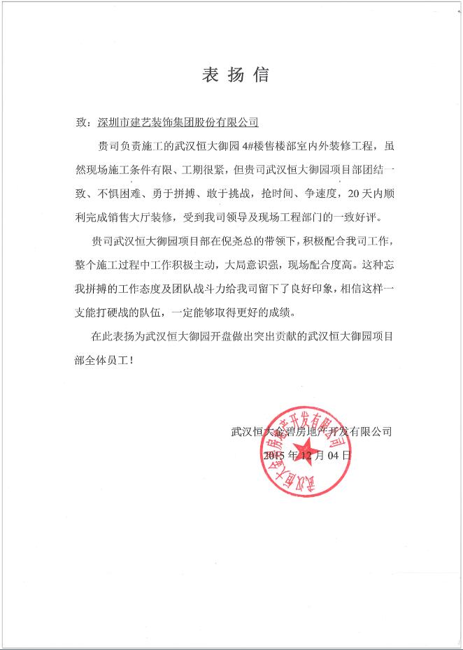 [上一篇]一封關(guān)于建藝集團(tuán)武漢佳兆業(yè)一號(hào)項(xiàng)目部的表?yè)P(yáng)信