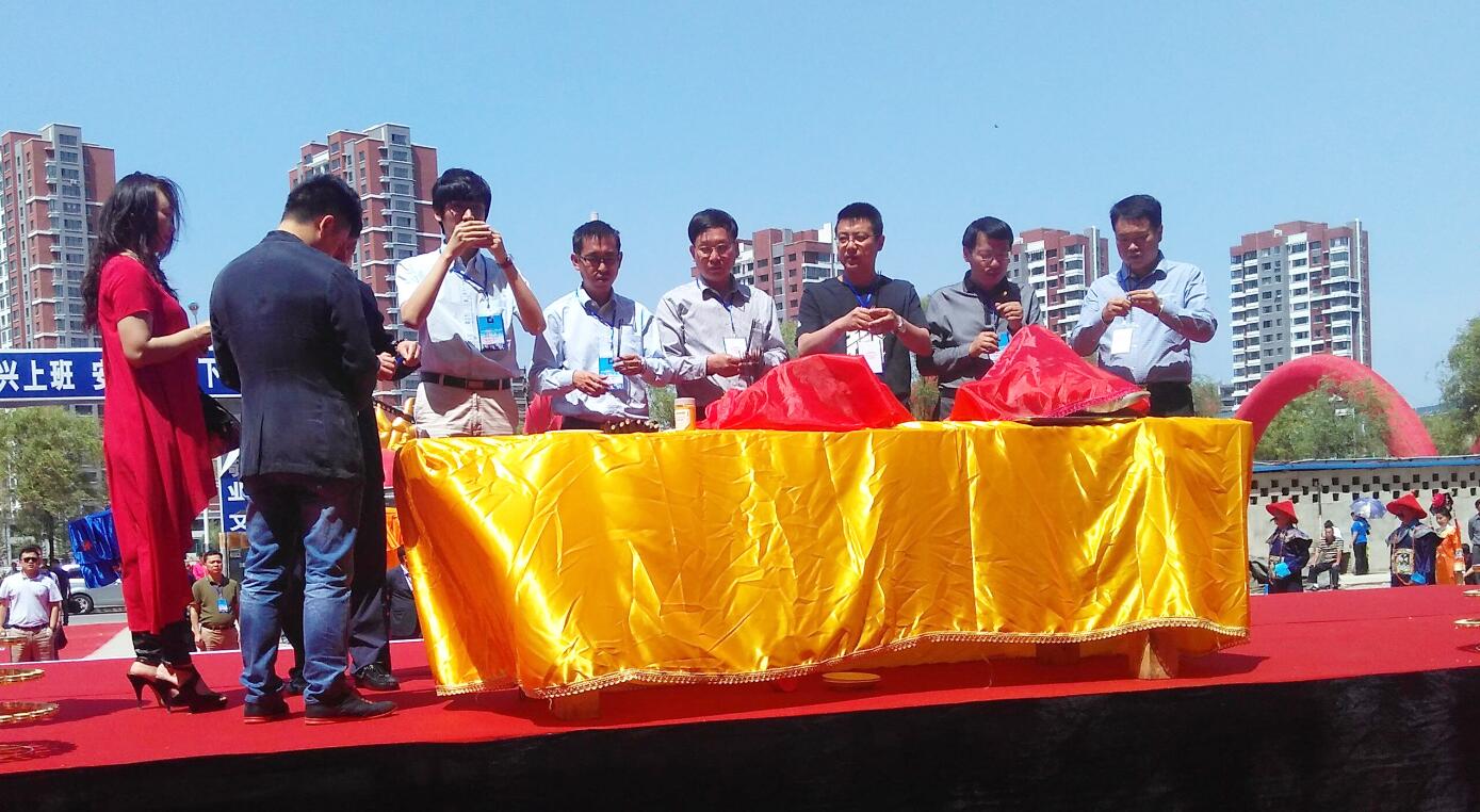 劉海云董事長(zhǎng)(一排左八)與當(dāng)?shù)卣I(lǐng)導(dǎo)一起參加慶典
