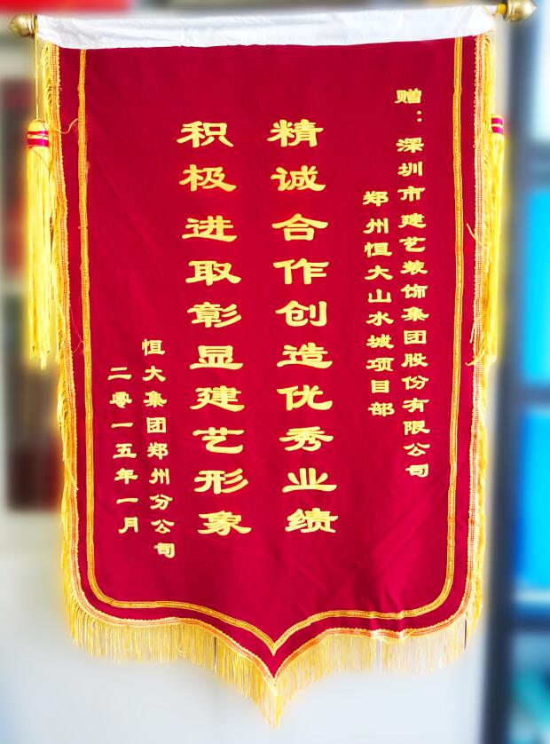 恒大集團(tuán)鄭州分公司贈(zèng)予建藝集團(tuán)鄭州恒大山水城項(xiàng)目部榮譽(yù)錦旗