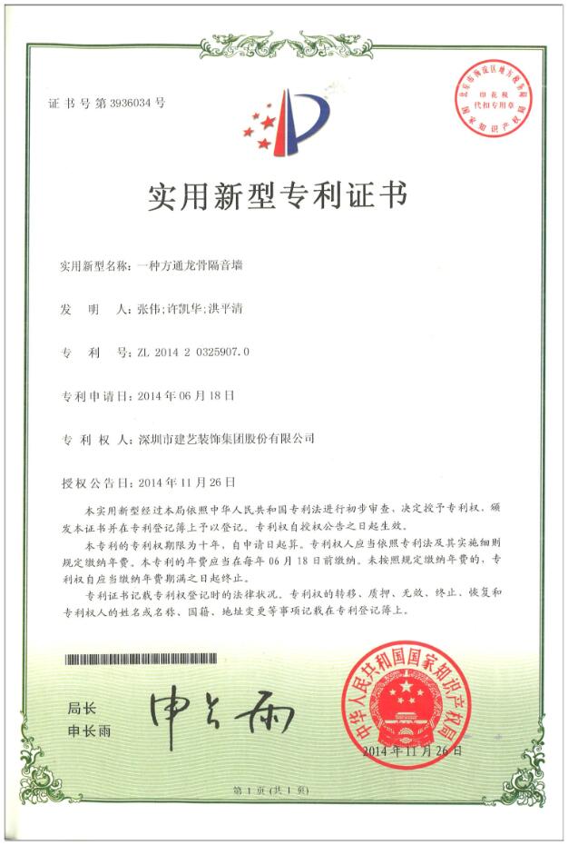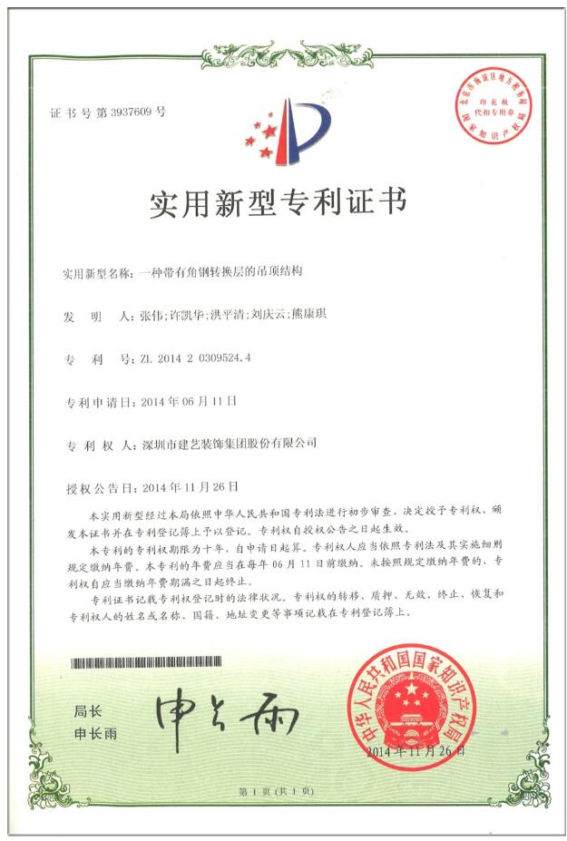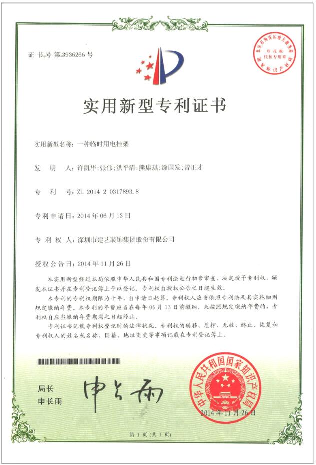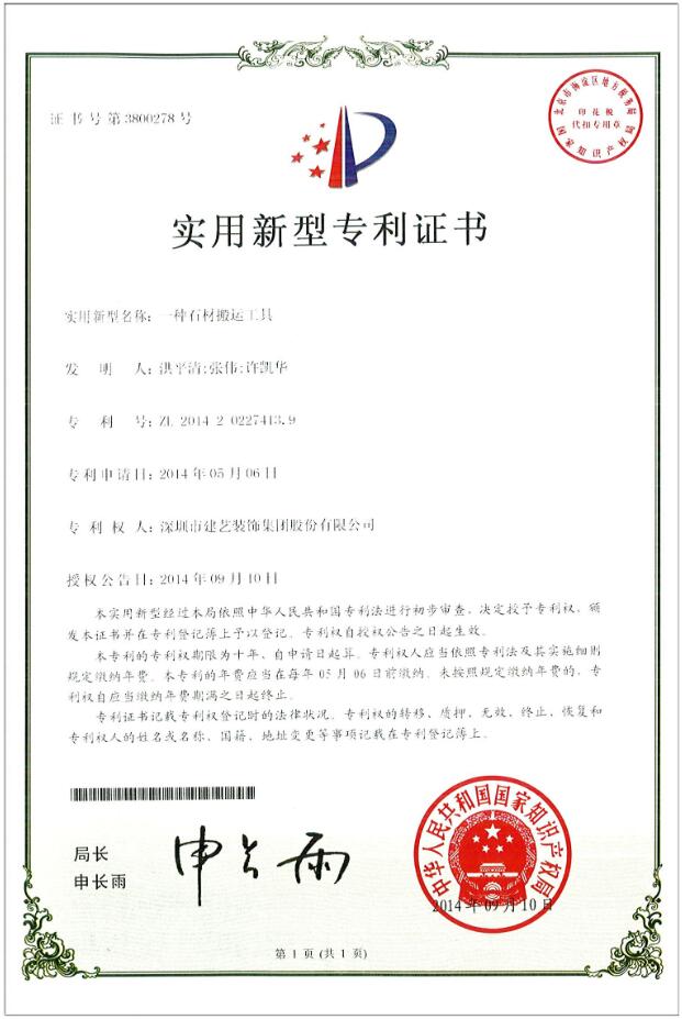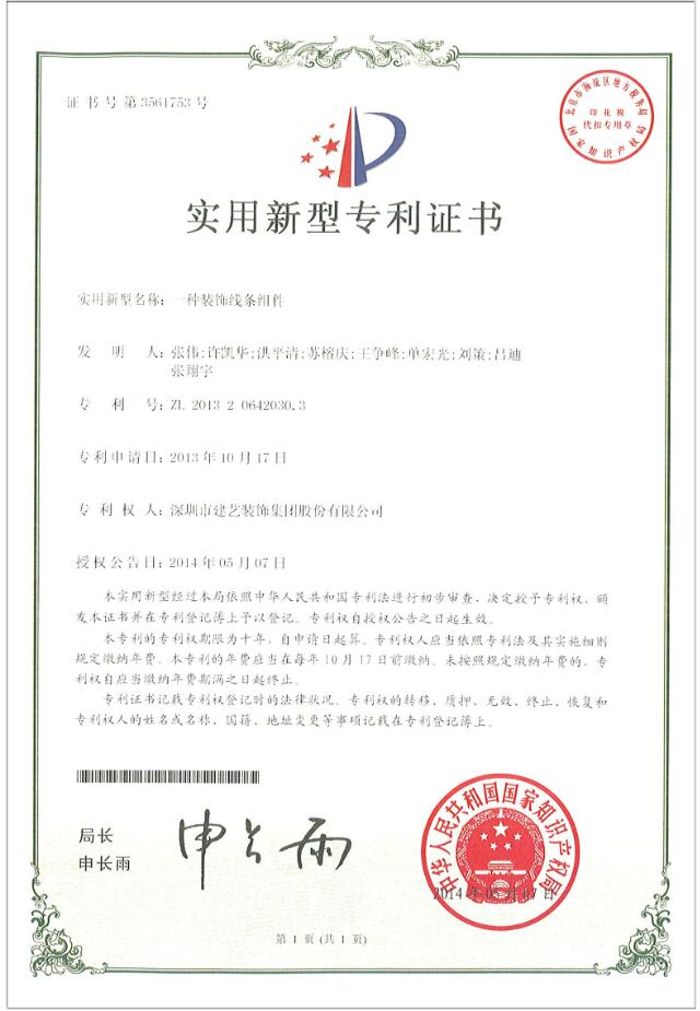 建藝集團(tuán)喜獲六項國家專利授權(quán)