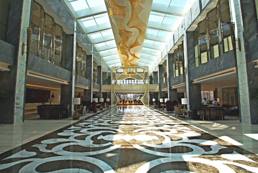 西安歐御大酒店坐落于西安市內(nèi)的曲江新區(qū),建藝集團(tuán)承建的酒店大堂區(qū)域精裝修,結(jié)合西安的歷史文化背景,營(yíng)造出氣勢(shì)磅礴的宏偉景象,再現(xiàn)盛世長(zhǎng)安的盛景。