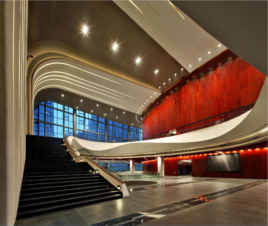 安徽廣電新中心在設計上提煉了中國圖騰元素龍及鳳的神韻來進行演繹,傳統(tǒng)古韻與時尚現(xiàn)代完美結合,該項目在2015-2016年度全國建筑工程裝飾獎(公共建筑裝飾設計類)評審中,獲得專家組高度贊許,榮獲2015-2016年度全國建筑工程裝飾獎。